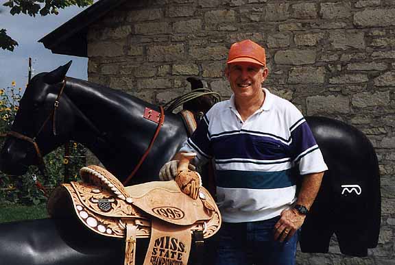 When I drove to Round Rock, TX (now in Hico, TX) from Cherryville, NC to pick up my Slick-Stick and Sled, I had just purchased a new, name brand, custom made saddle a few weeks earlier, so, quite frankly, another new saddle was the farthest thing from my mind. While taking instruction on "Ol' Slick" I couldn't help notice the ease of getting up in the saddle. I asked and found out I was roping in one of the new ROPRO Upfront saddles. What a difference! I manage a Paint Horse breeding, showing and training business in North Carolina. Prior to that, I trained and showed Quarter Horses and was an AQHA Judge for over 21 years. NEVER have I experienced a saddle that fits, sits, or, in the case of team roping, stands like these saddles built on the David Jones trees. Riders in these saddles ride more correctly. Beginning riders learn to get their balance much quicker. Horses ridden in these saddles train easier and move more correctly. I believe these saddles are the greatest innovation to ever happen in the western riding industry. I produce two ROPRO Training Systems Team Roping Schools per year, here at our facility. The performance of the horses and the ability for people to improve their roping is very obvious in these saddles. At our last school 91% of the people who attended the school ended up purchasing saddles, not because they were pressured into buying but because they could easily see and feel the results from the saddles. David made, for us, Western Pleasure models of the upfront saddle. My experience told me that as comfortable and as horsemanship correct as these saddles fit, they would make great show saddles. We recently won 3 National Championships and one All-Around National Championship at the Pinto National Championship Show in these saddles. Once you've found out how much easier your horse is to train, enjoy how much better your horses work and feel how much easier you and your horse can perform in these David Jones, Upfront, Vertical Balance Saddles, I'm sure you will be as impressed as I am. Ken Backhaus, Cherryville, NC