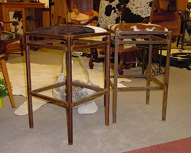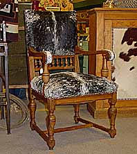 Arm Chair upholstered with back and white steer-hide and brass nailed.
