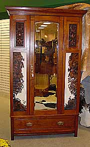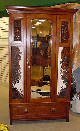 Wardrobe inset panels, upholstered with tri-colored steer-hide. Very